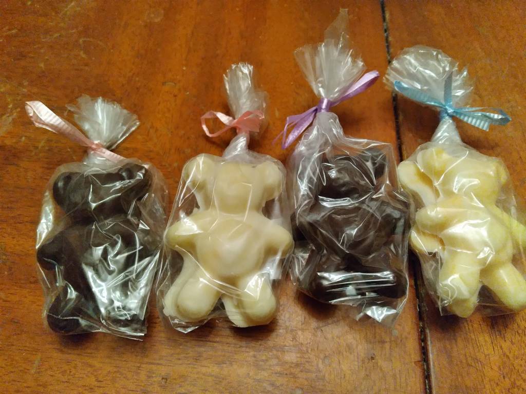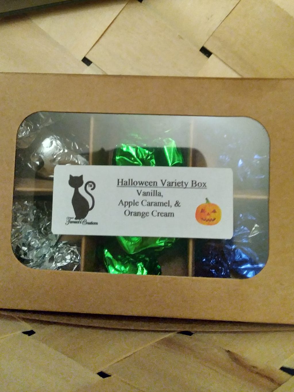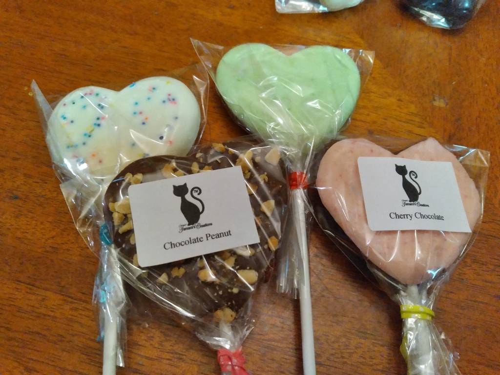 All chocolates are made with CANDYQUIK™, extracts, and/or food coloring. I, personally melt, mix, mold, and wrap each chocolate in-house.