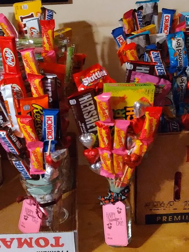 Bouquets are made with pre-packaged chocolates of your choice (up to 5). Choose between SMALL or LARGE.