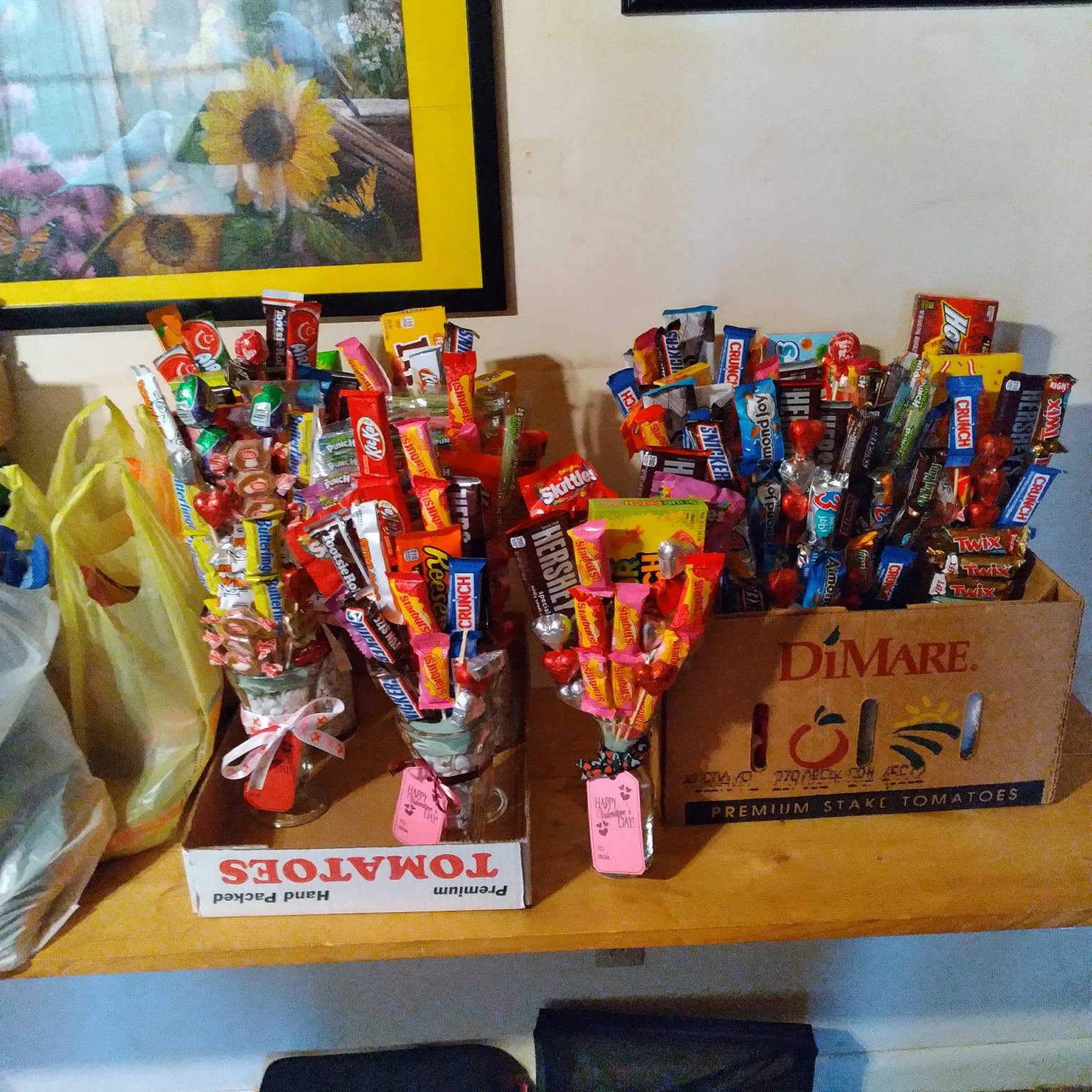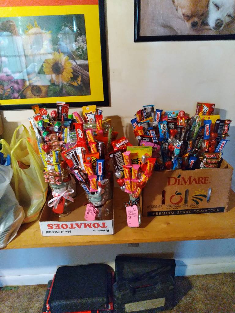 Bouquets are made with pre-packaged chocolates of your choice (up to 5). Choose between SMALL or LARGE.